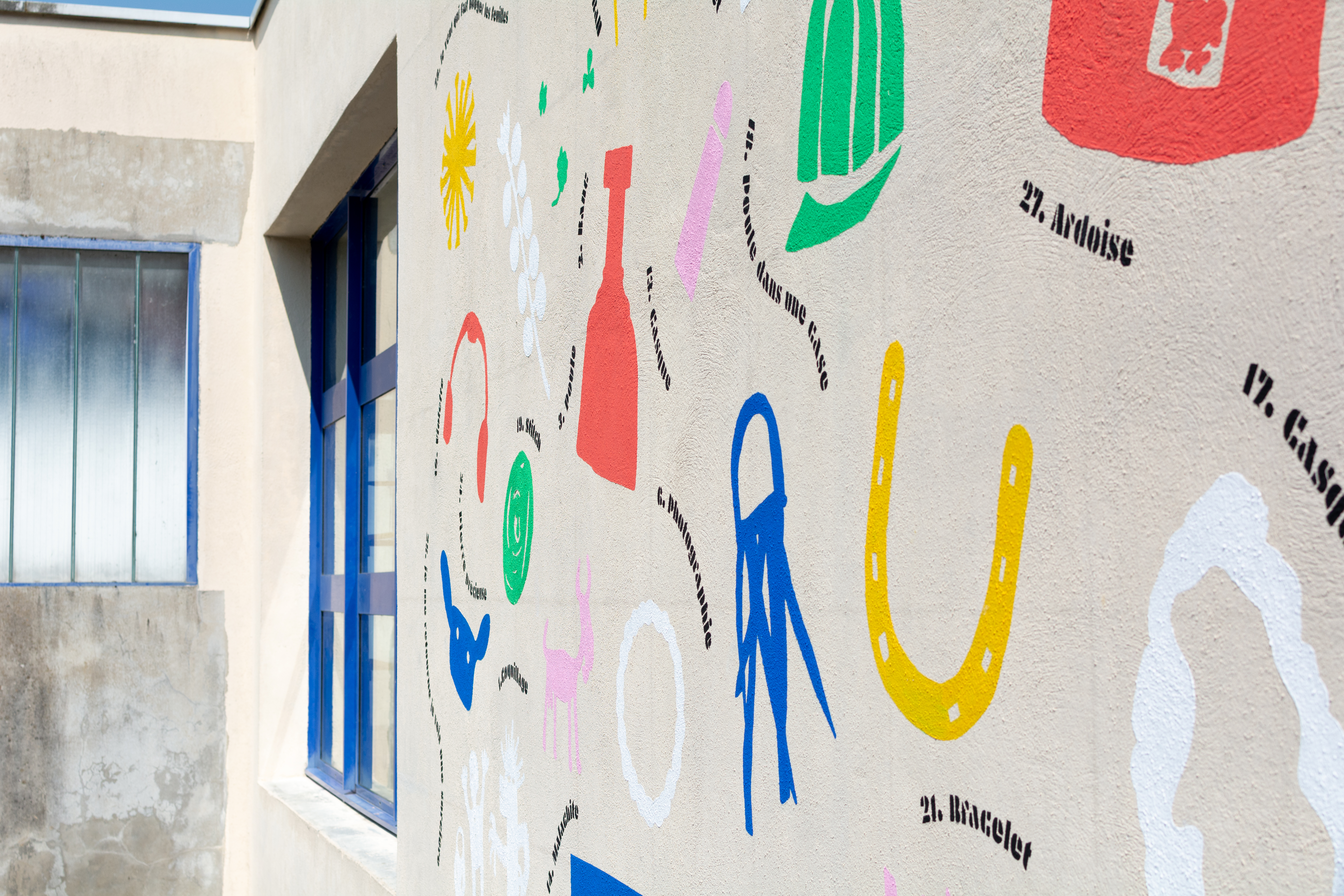 Ce projet a abouti à la réalisation d’une fresque inspirée des carnets de terrain de l’ethnologue ainsi que la création d’un recueille de devinette.